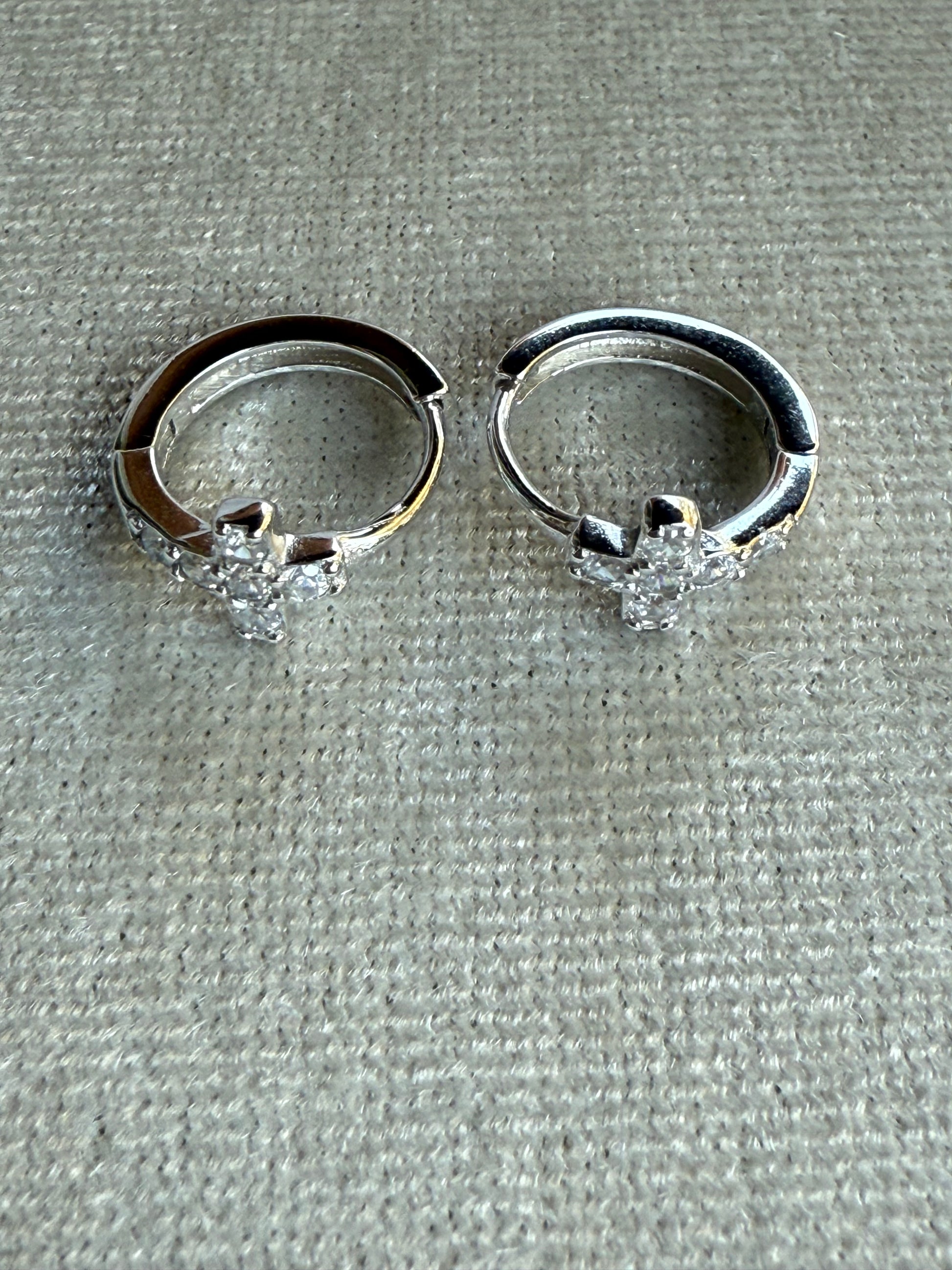 Pendientes de Plata de Ley con baño de rodio, diseñados en forma de aro con cruz de circonitas blancas.