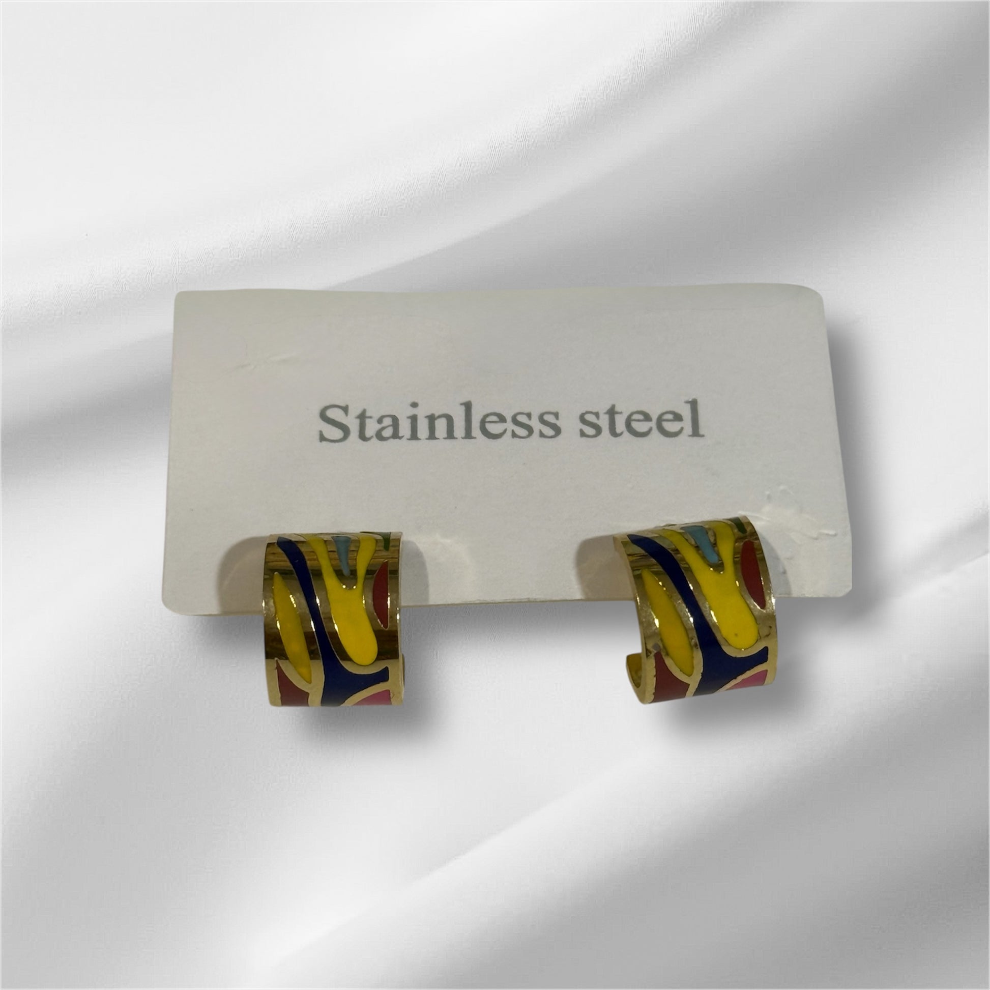 Pendientes de acero inoxidable con esmalte en tonos llamativos.