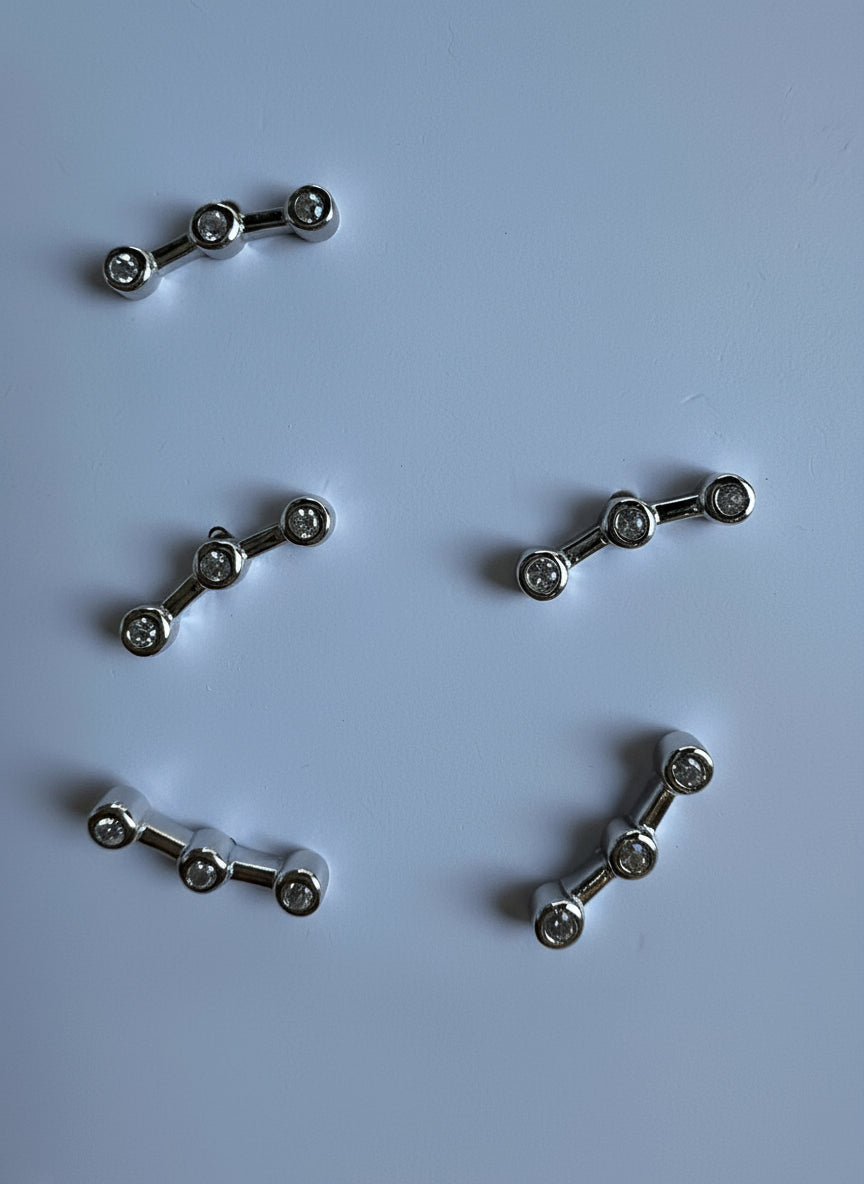 Pendientes de Plata de Ley 925 con tres circonitas engarzadas en línea. Su diseño minimalista evoca las estrellas que forman una constelación, símbolo de guía, conexión y destino.