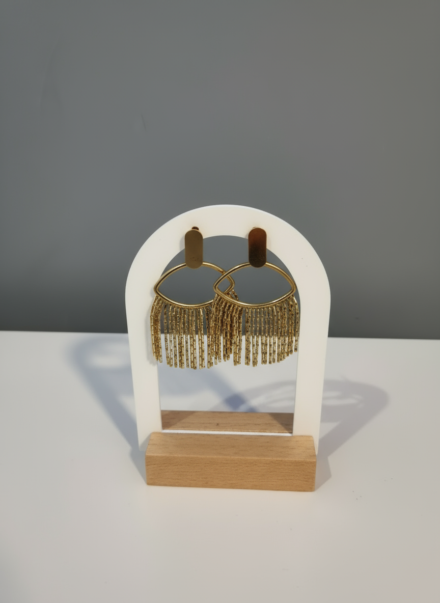 Pendientes de acero inoxidable dorado con diseño de ojo estilizado.